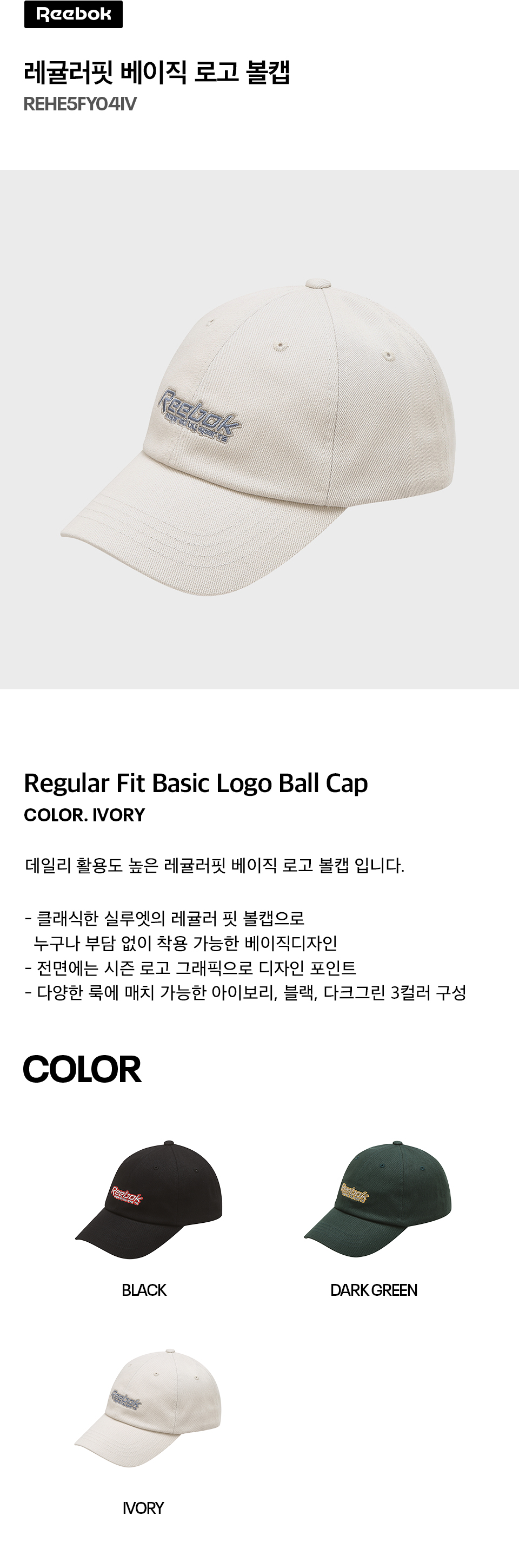 리복 레귤러핏 베이직 로고 볼캡 아이보리