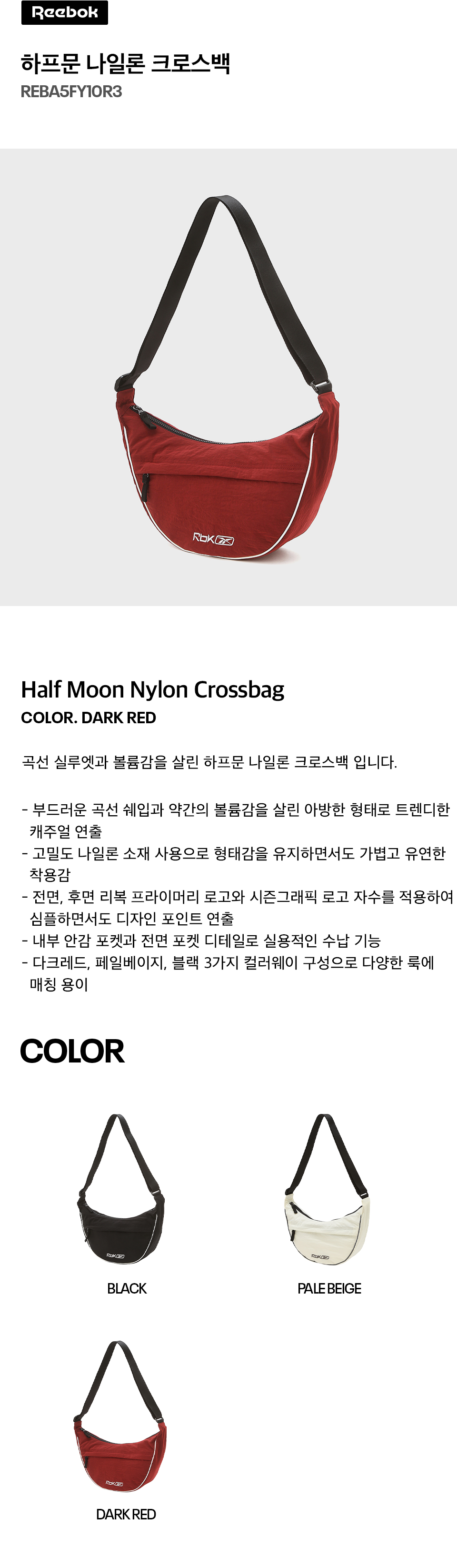 리복 하프문 나일론 크로스백 다크 레드
