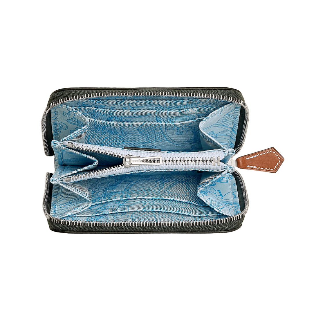 에르메스 실크인 컴팩트 월렛 에버컬러 바레니아 카프스킨 & 팔라듐 하드웨어 베르 망그로브 블루 브룸 블루 하이드라