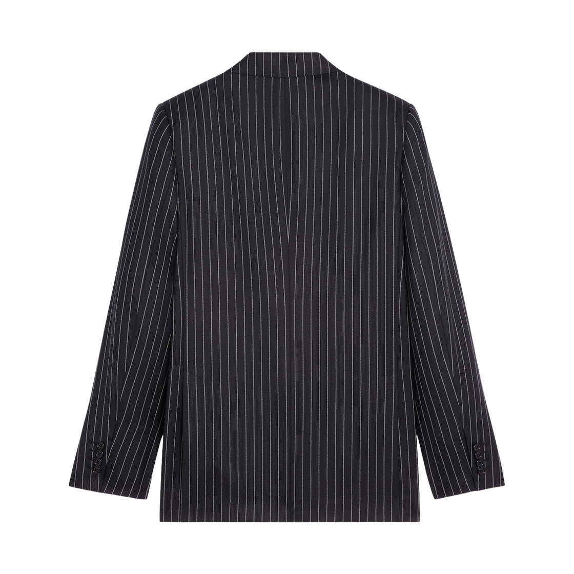 Celine Camden Jacket in Striped Wool Gabardine Navy Craie