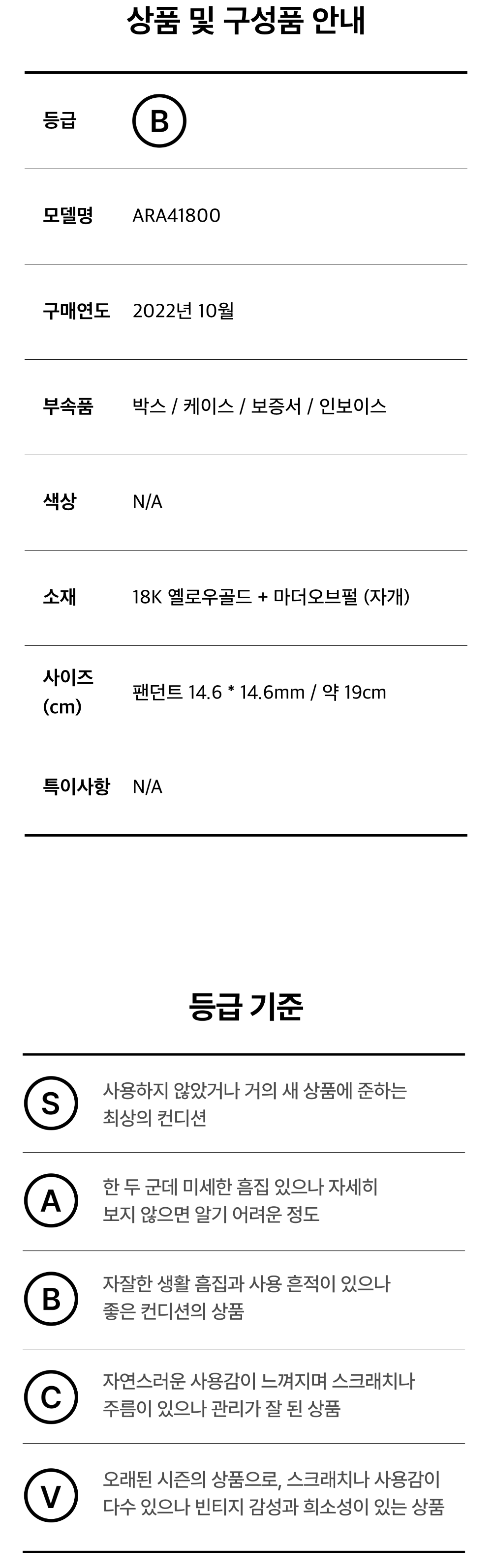 반클리프앤아펠 ARA41800 빈티지 알함브라 5 모티브 18K 옐로우골드 팔찌