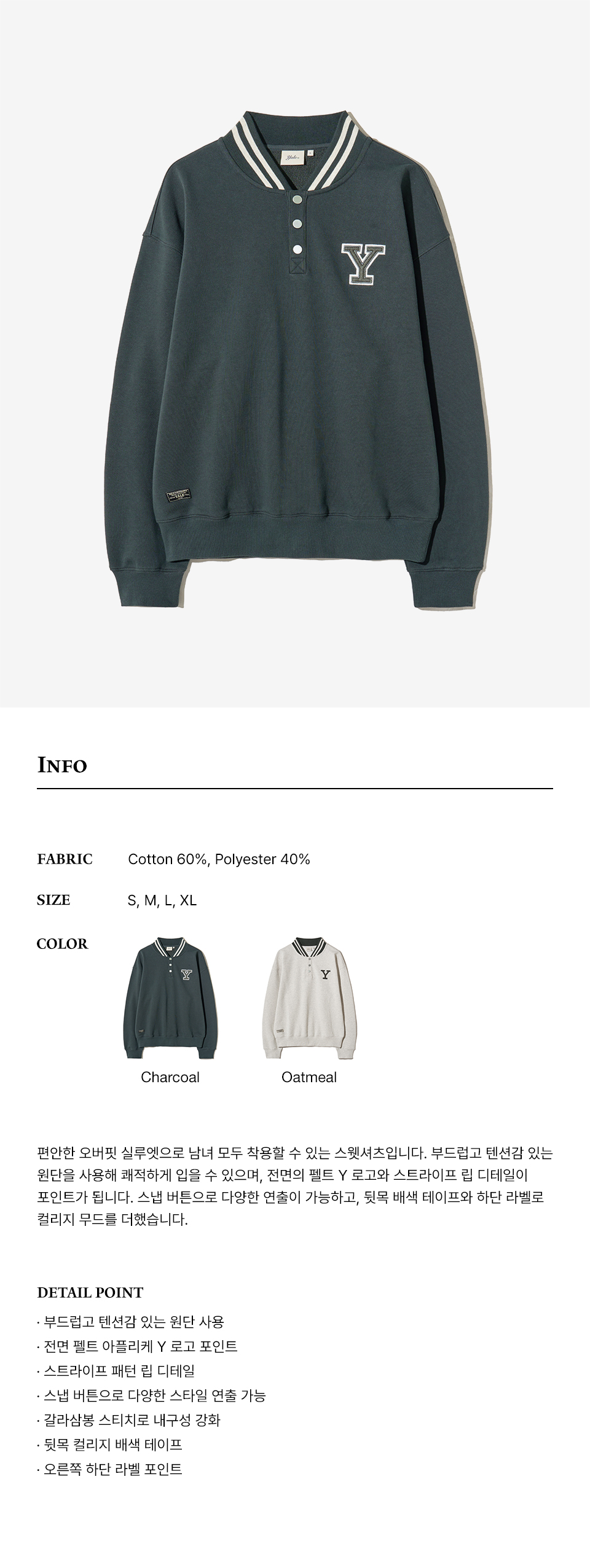 예일 Y로고 버튼 플리츠 스웻셔츠_차콜