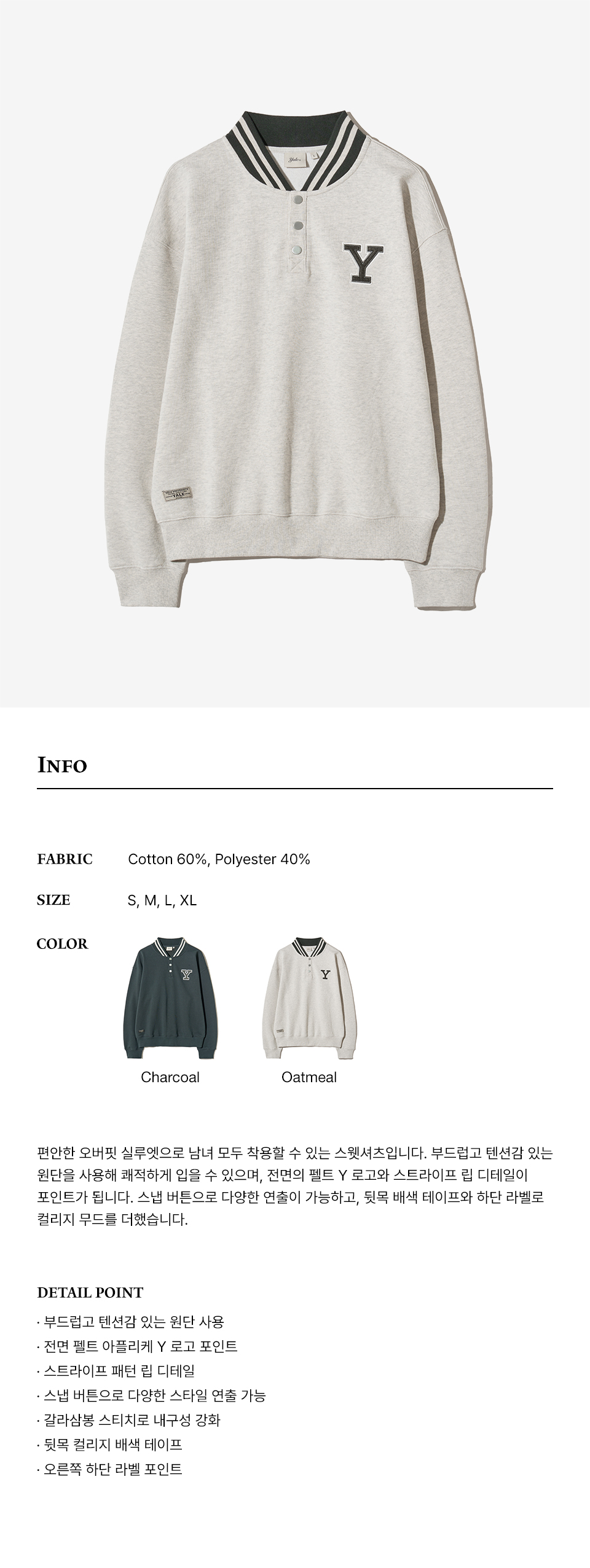 예일 Y로고 버튼 플리츠 스웻셔츠_오트밀
