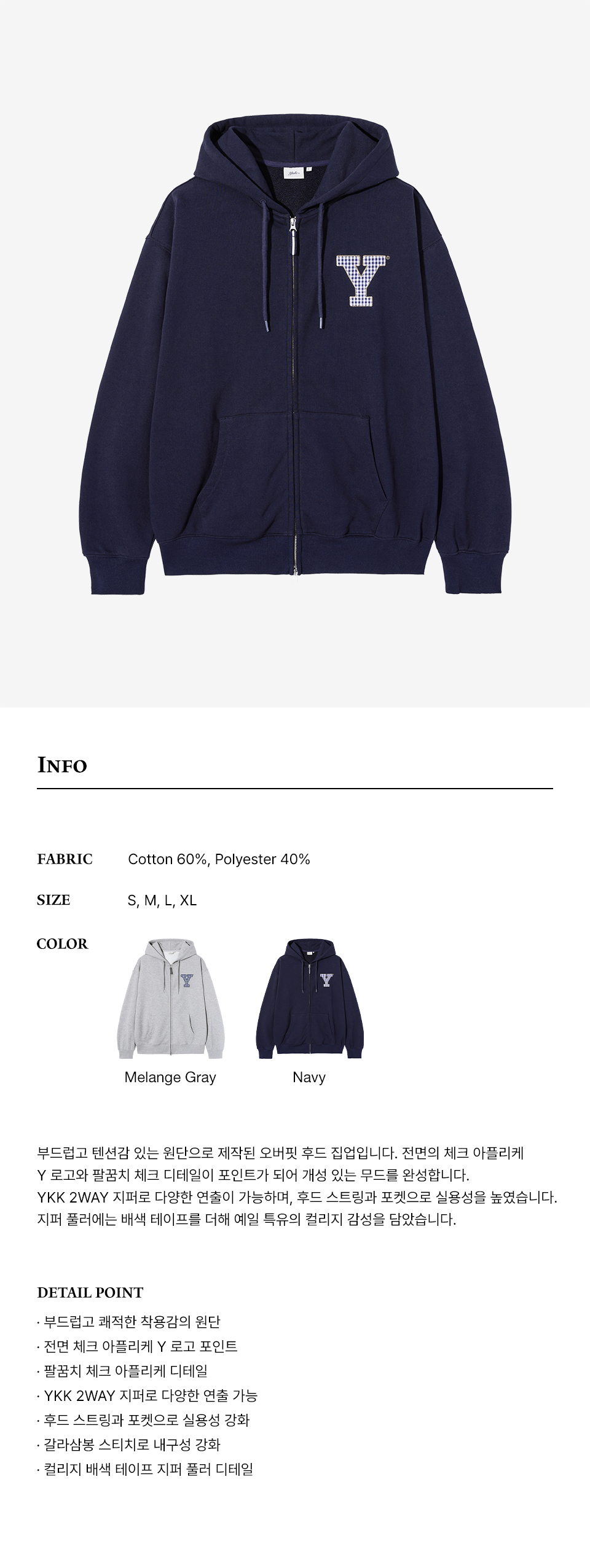 예일 Y로고 체크 아플리케 후드집업_네이비