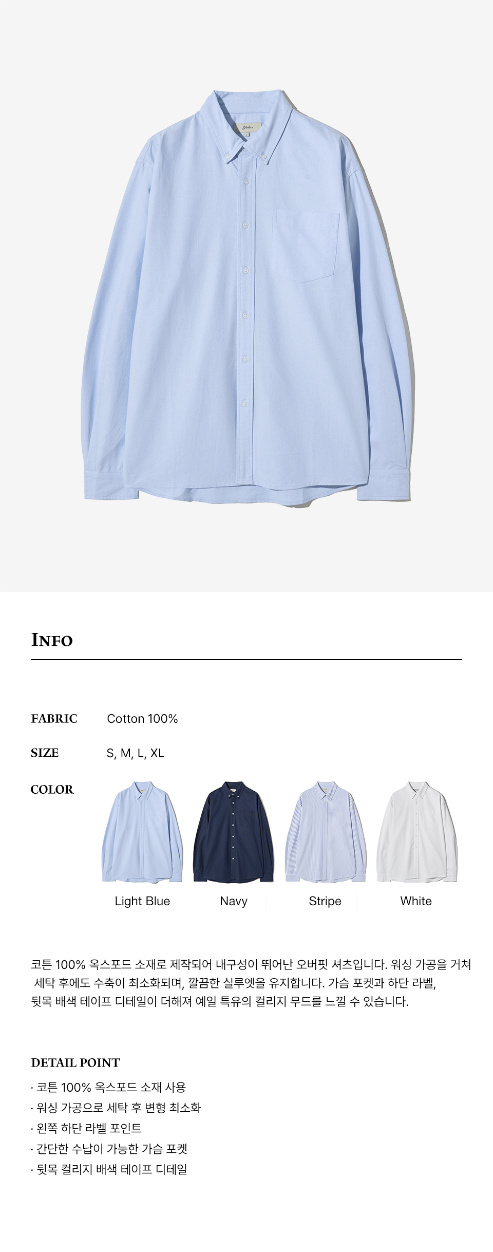 예일 100% 코튼 오버핏 옥스포드셔츠_라이트 블루