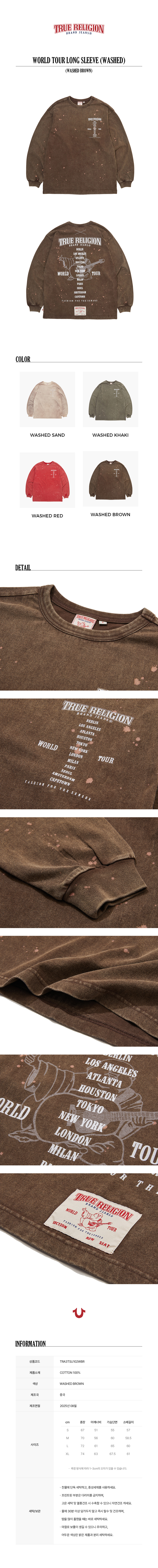트루릴리젼 월드 투어 롱 슬리브워시드 워시드 브라운
