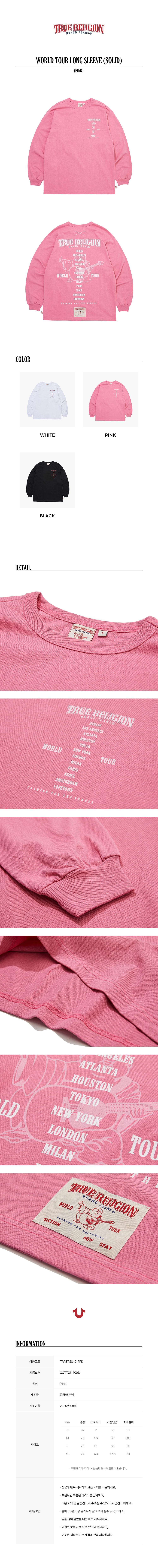 트루릴리젼 월드 투어 롱 슬리브 솔리드 핑크