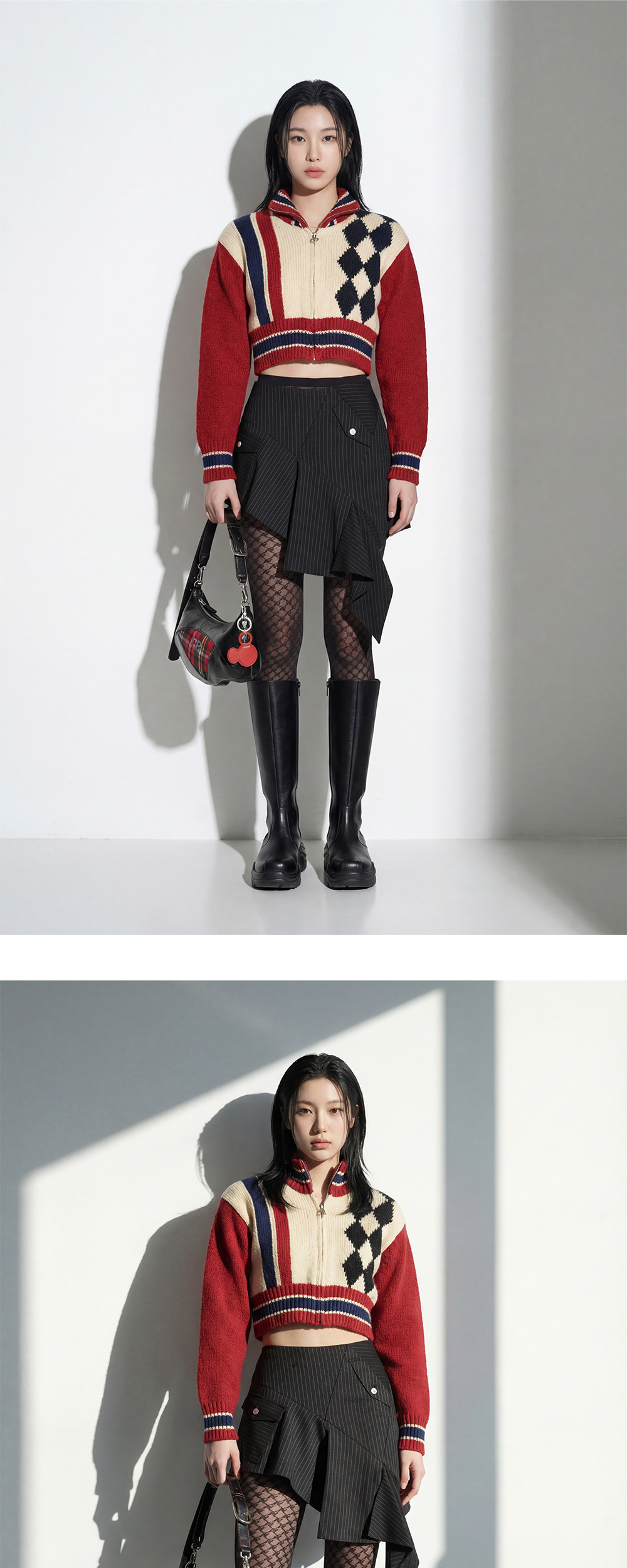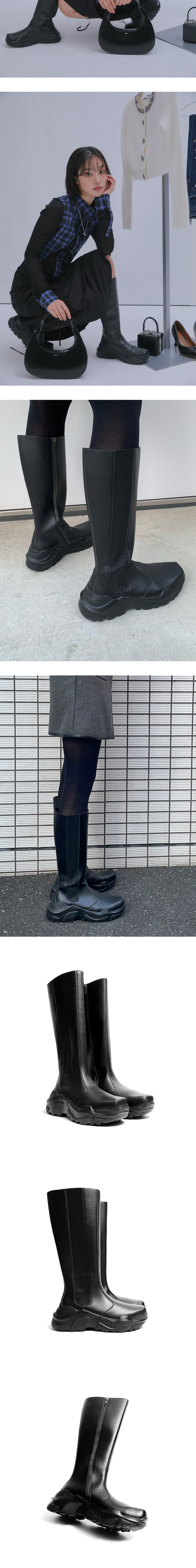 유광 블랙 레더 소재로 완성된 아키코아오키 우먼 롱 아이시클 블랙 부츠입니다. - 하이컷 롱부츠 디자인 - 유광 블랙 가죽 소재 - 입체적인 절개선 디테일 - 볼륨감 있는 아웃솔 ✧ AI로 제작한 콘텐츠가 포함되었습니다.