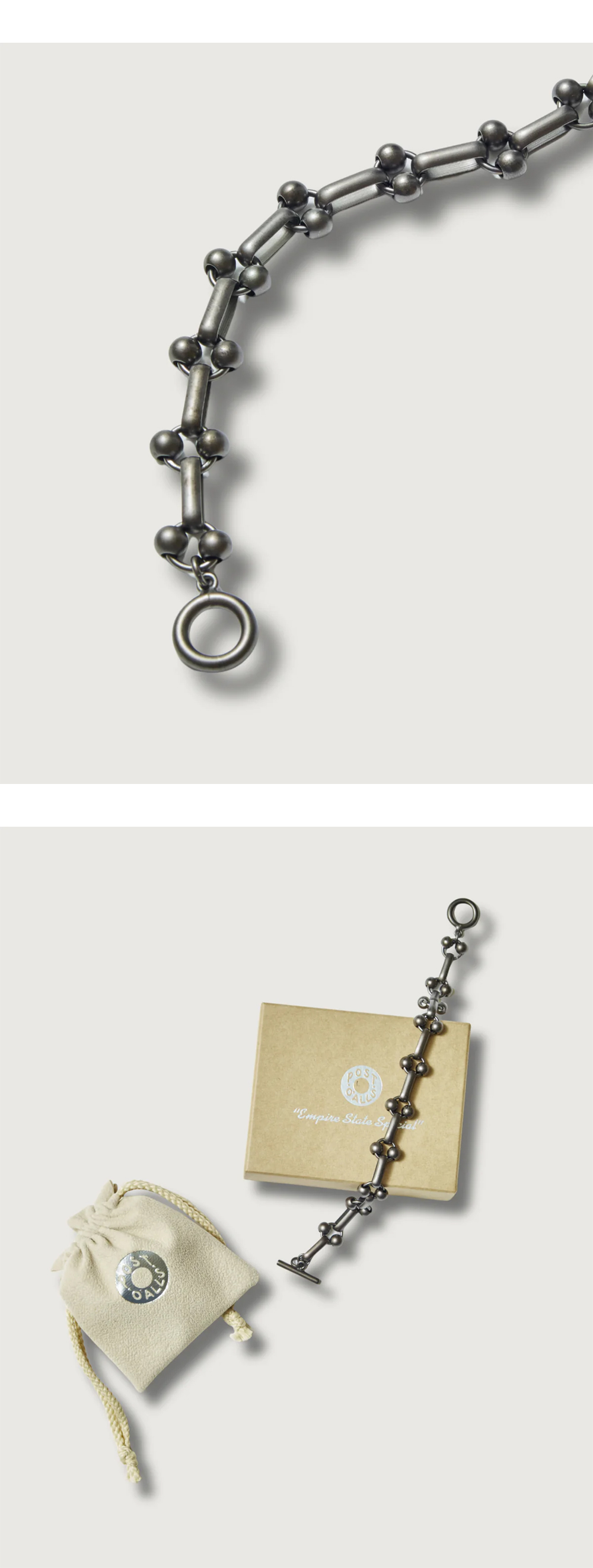 데드스톡 체인을 가공해 제작된 포스트 오버롤즈 포스트 브레이슬릿 #2 플랫 블랙입니다. - 데드스톡 체인을 사용한 오리지널 브레이슬릿 - NOS 브라스 체인에 블랙 도금 처리된 제품