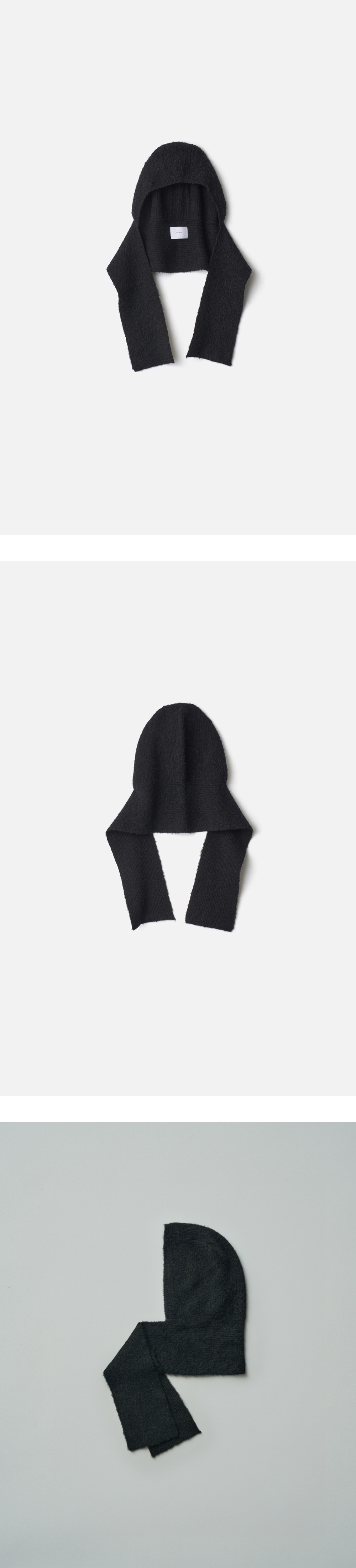 아주 고운 베이비 알파카와 고급 질롱 램 울을 혼방한 슈타인 울 알파카 밀드 니트 바라클라바 블랙입니다. - 레귤러 핏 니트 바라클라바 - 고급 베이비 알파카 + 질롱 램 울 혼방 원사로 제작 - 기모 가공(풀링 & 브러싱)을 통해 매우 가볍고 부드러운 촉감과 은은한 네프 텍스처를 지닌 제품
