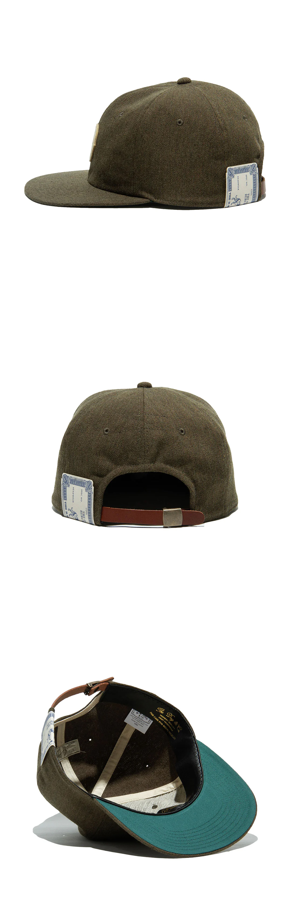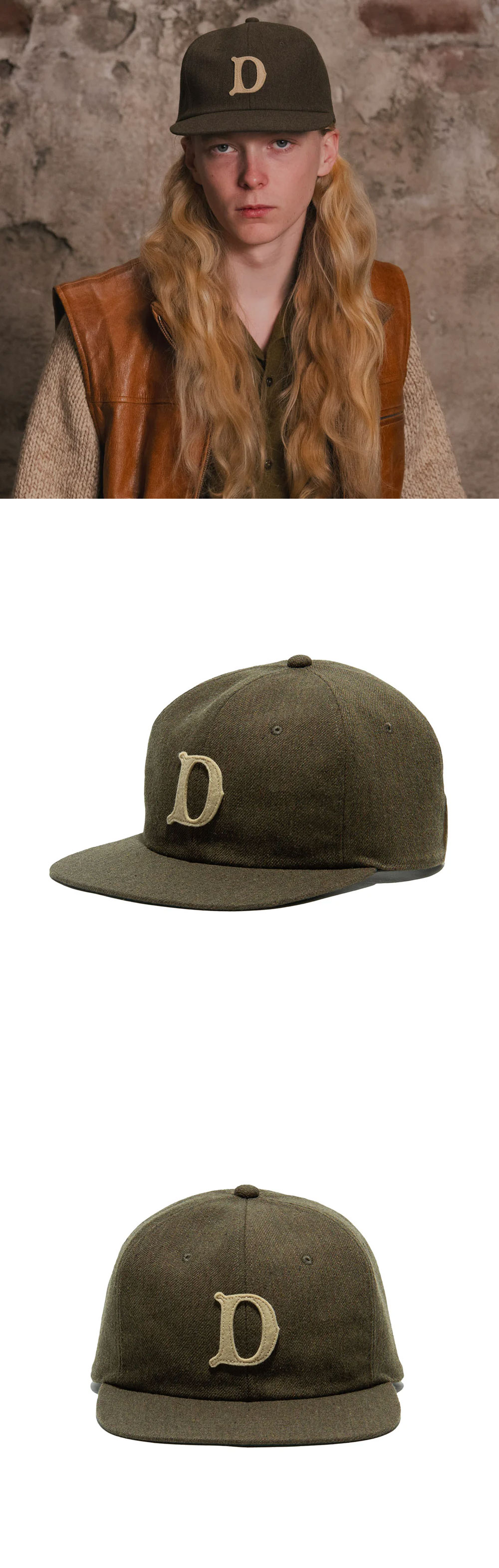 1860년대 야구가 대중화되던 시절의 캡 디자인을 재현한 더 H.W. 도그 앤 코 베이스볼 캡 카키입니다. - ‘D’ 와펜과 가죽 조절 스트랩이 특징 - 전통적인 말꼬리·사슴털 모심 안감을 사용해 내구성을 높임 - 오리지널 철제 몰드와 디테일한 가죽 땀받이까지 정성 들인 시그니처 아이템