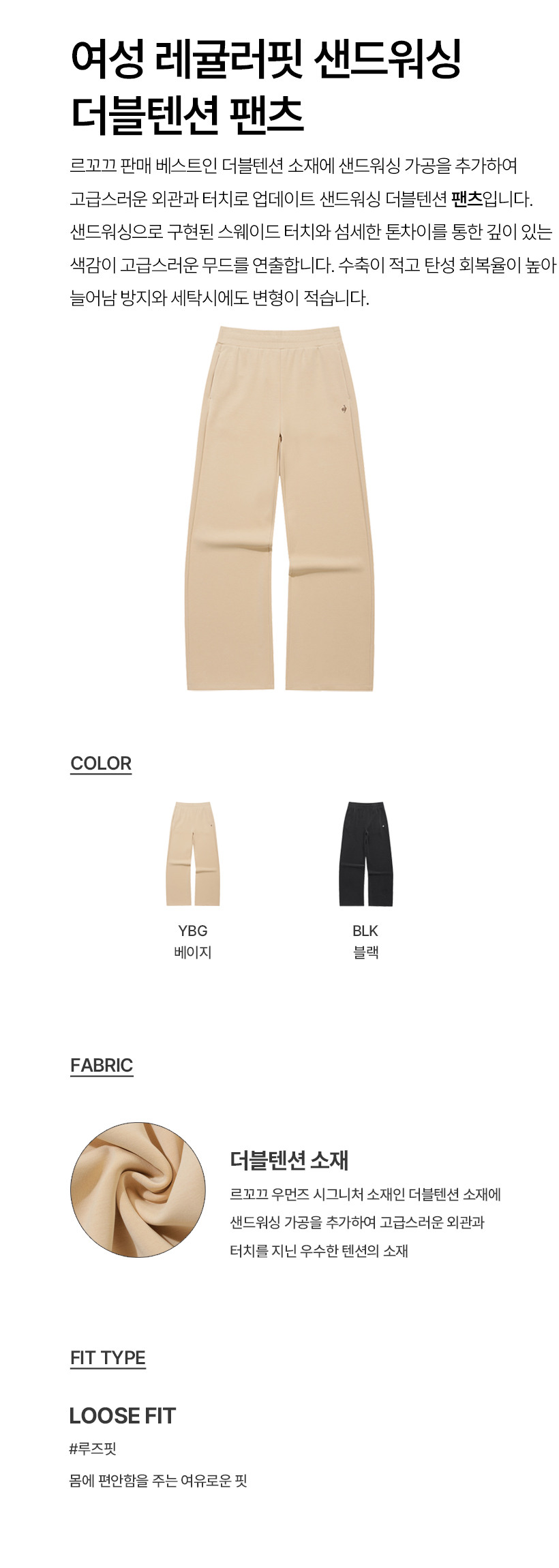 르꼬끄 스포르티브 여성 레귤러핏 샌드워싱 더블텐션 팬츠 - 블랙(QQ322OFP85)
