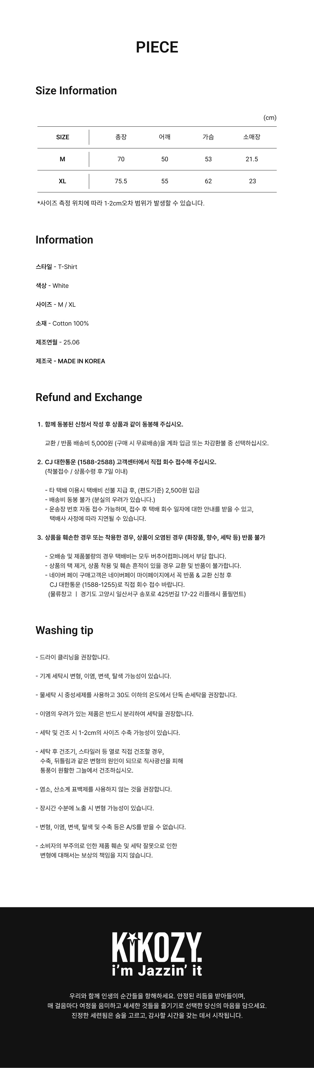 키코지 티셔츠 피스 01 화이트