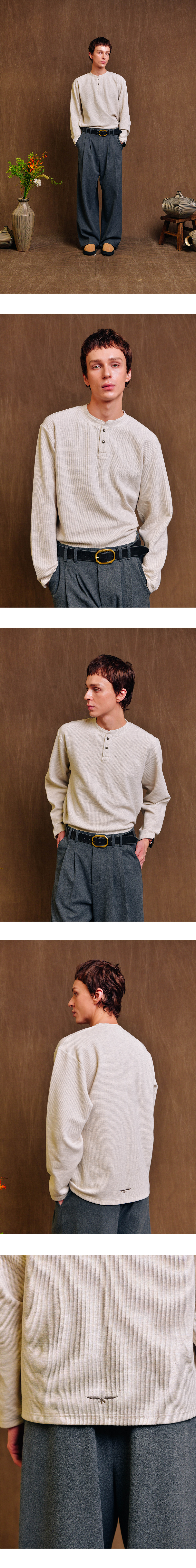 오가프 와플 헨리넥 긴팔 오트밀