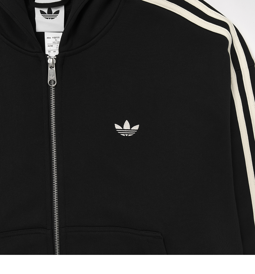 아디다스 삼선 풀집 후드 블랙 크림 화이트 - KR 사이즈