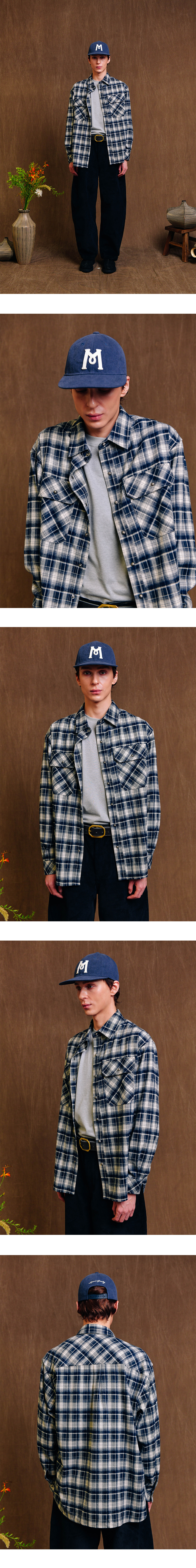 오가프 콘초 오버사이즈 체크 셔츠 네이비
