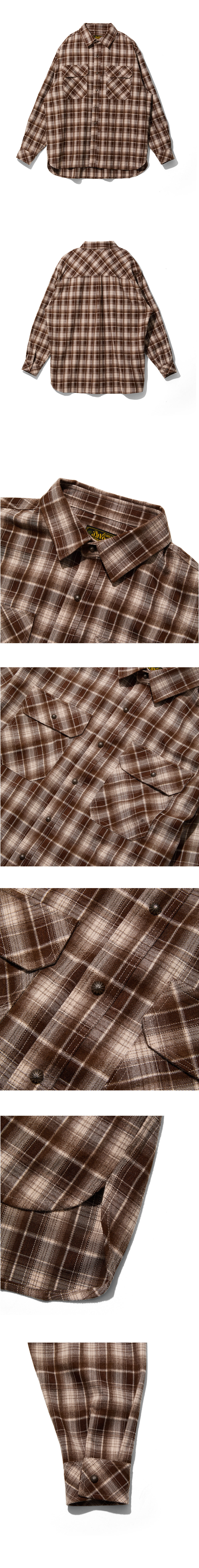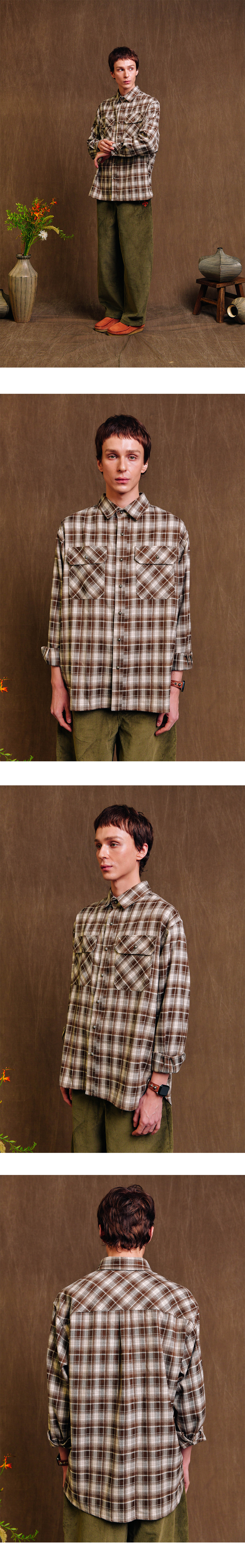 오가프 콘초 오버사이즈 체크 셔츠 카키 브라운