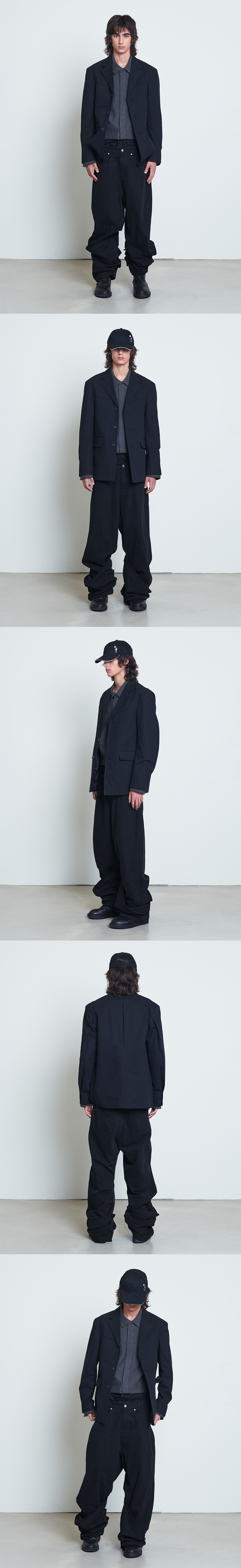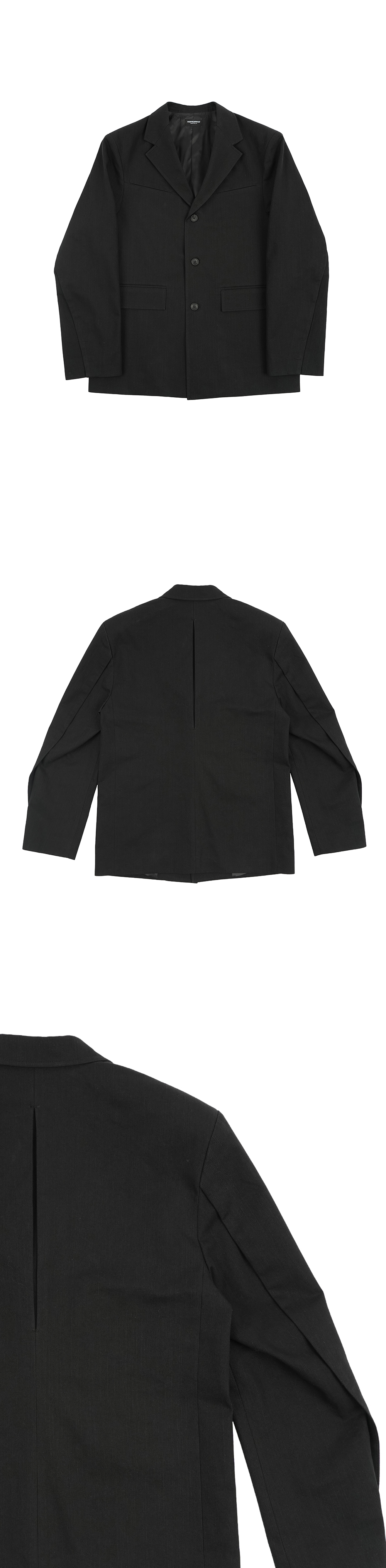곡선형 컷라인과 다트로 가슴·어깨 라인을 입체적으로 잡아주고, 드롭된 숄더와 여유 있는 소매가 현대적인 실루엣을 완성합니다. 힘 있게 떨어지는 원단이 형태를 깔끔하게 유지하며, 3버튼 프론트와 미니멀 포켓으로 디테일을 정제했습니다. 뒤판 센터 턱 디테일이 움직임을 편하게 해주고 비율을 또렷하게 정리합니다. 유니섹스 핏으로 정사이즈 기준 적당히 여유로운 착용감입니다.