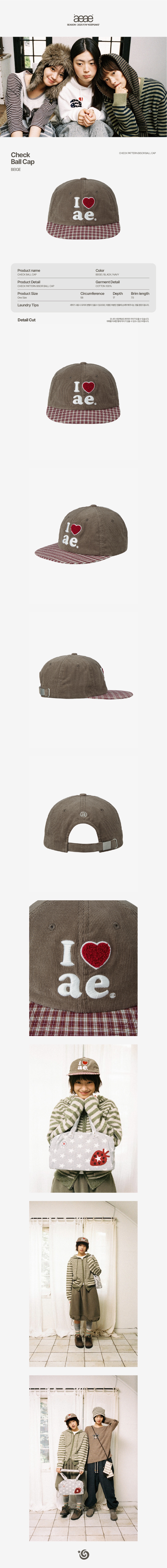 에이이에이이 체크 볼캡 베이지