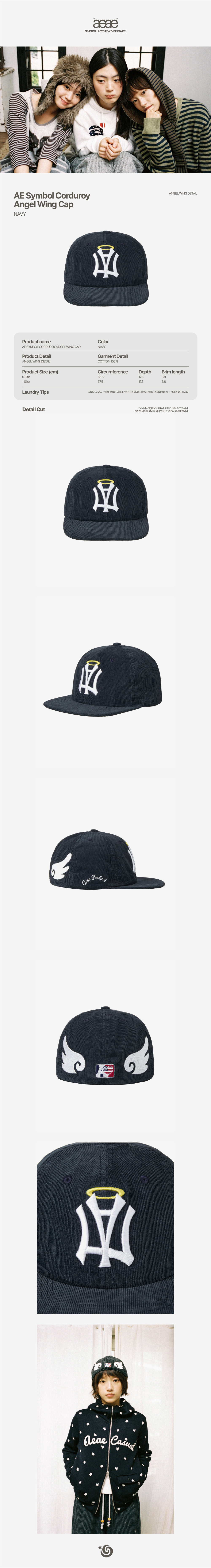 에이이에이이 에이이 심볼 코듀로이 엔젤 윙 캡 네이비
