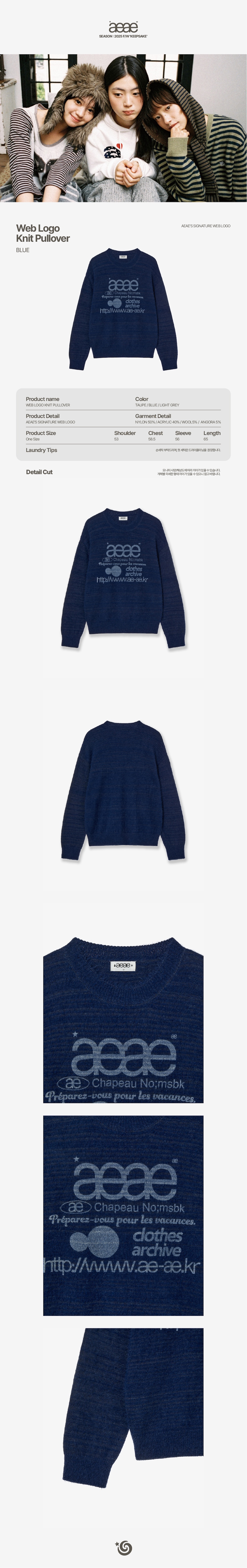 에이이에이이 웹 로고 니트 풀오버 블루