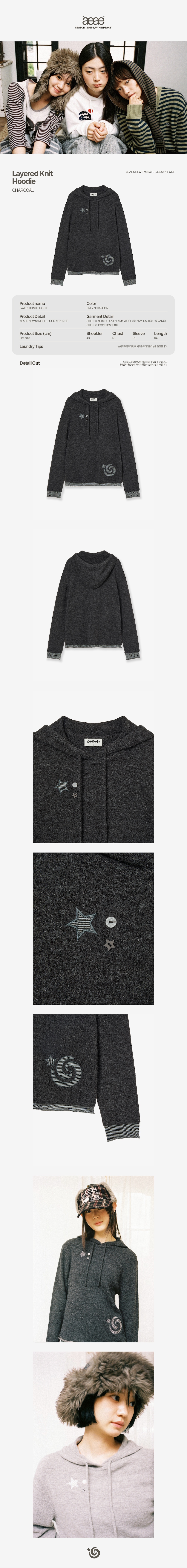 에이이에이이 레이어드 니트 후디 차콜