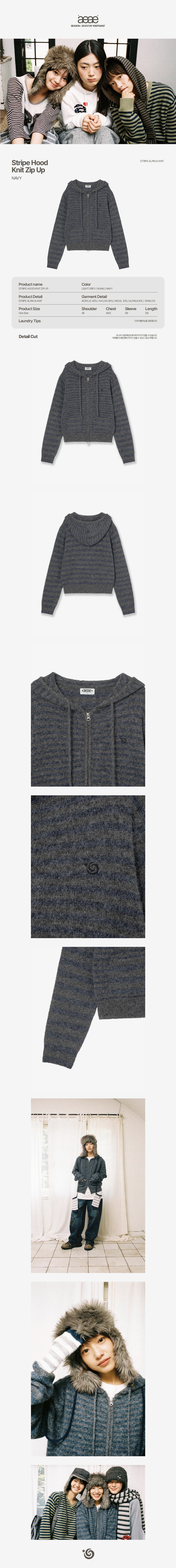 에이이에이이 스트라이프 후드 니트 집업 네이비