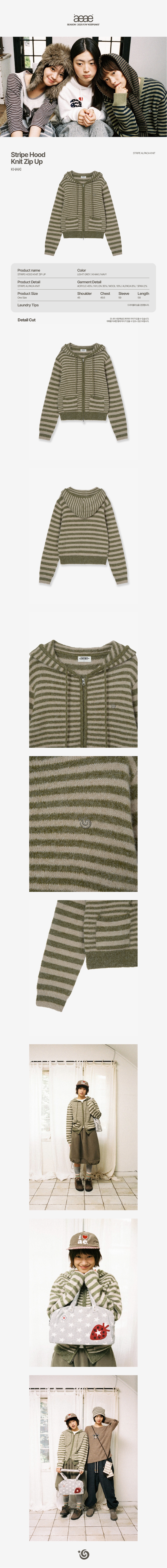 에이이에이이 스트라이프 후드 니트 집업 카키