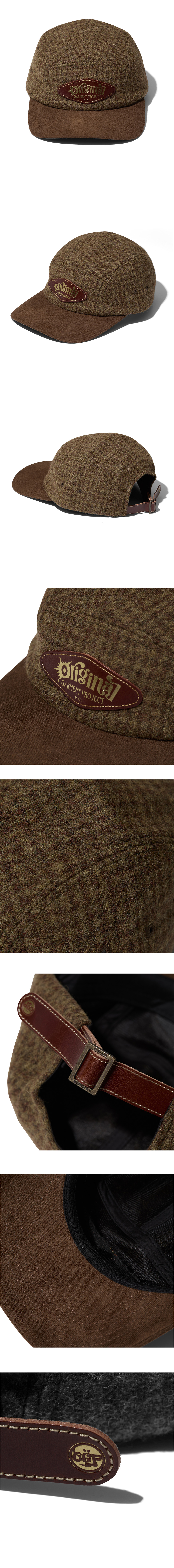 오가프 울 체크 가죽 와펜 5P 캡 올리브옐로우