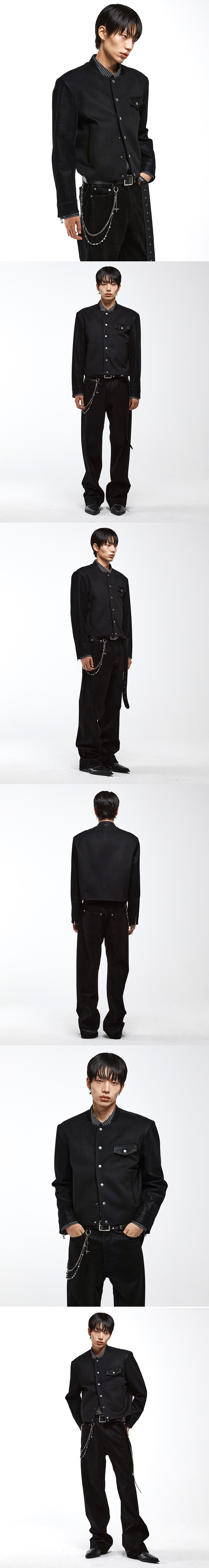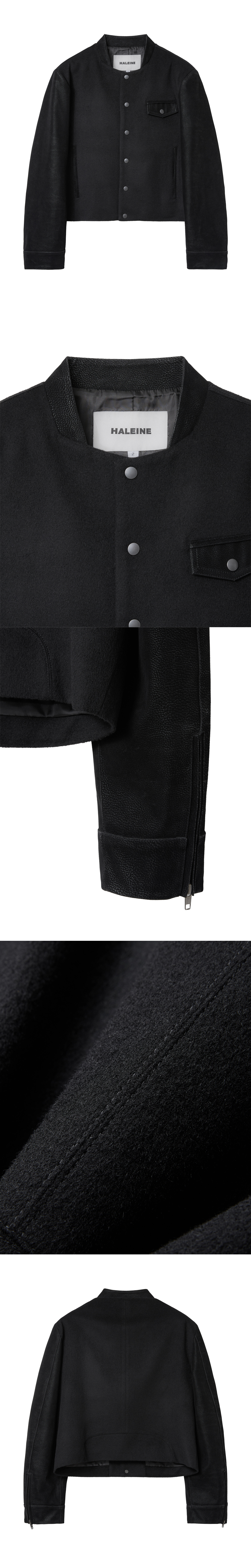 바시티 자켓의 아이코닉한 요소를 테일러드 무드로 재해석한 크롭 자켓입니다. 밀도감 있는 울 원단에 인조 누벅을 배색하여 강렬한 텍스처 대비를 주었으며, 스냅 버튼 여밈과 소매 지퍼 디테일이 구조적인 실루엣을 완성합니다. -DETAIL- 울 혼방 원단 & 인조 누벅 배색 크롭 기장 프런트 스냅 버튼 여밈 배색 플랩 포켓 소매 지퍼 여밈 숄더 패드 내장