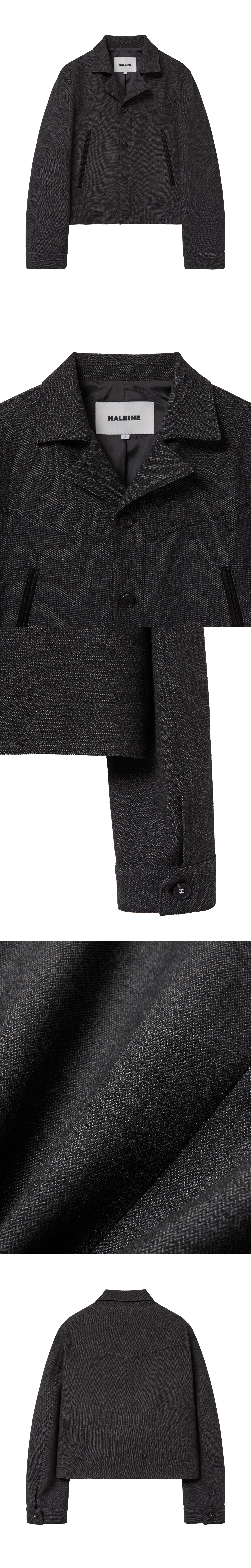 작은 스케일로 짜여진 투톤 헤링본 소재로 제작된 크롭 자켓입니다. 미세한 직조가 주는 섬세한 질감과 투톤 컬러의 은은한 대비가 절제된 무드와 어우러집니다. 프런트·백 V라인 요크 절개와 인조 누벅 소재로 배색된 사선 웰트 포켓이 구조감을 더하며, 노치드 라펠과 천연 소뿔 단추가 클래식한 완성도를 높입니다. 크롭 기장과 구조적인 패턴이 조화를 이루며 간결한 실루엣을 연출합니다. -DETAIL- 노치드 라펠 천연 소뿔 단추 여밈 프런트·백 V라인 요크 절개 인조 누벅 배색 웰트 포켓 커프스 버튼 여밈 (6구 H 스티치 자체 개발 단추) 숄더 패드 내장 크롭 기장