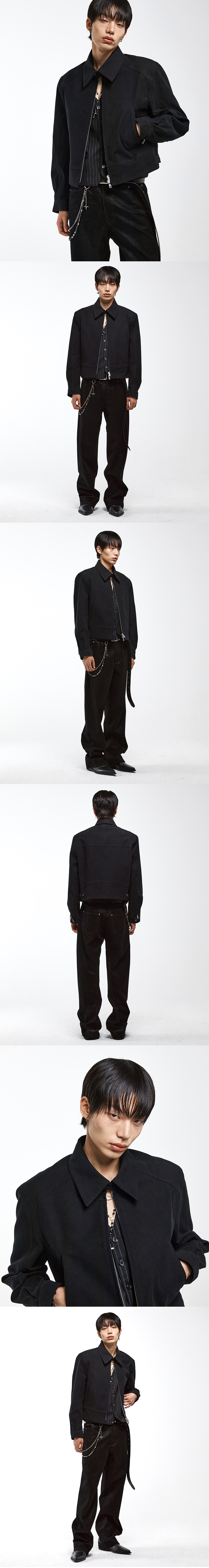 3D 몰스킨 숏 자켓입니다. 다중 패널 절개로 입체적인 실루엣을 구현했으며, 밀도감 있는 몰스킨 원단의 매트한 표면감이 라인을 선명하게 잡아줍니다. 커프스는 지퍼와 단추가 결합된 하이브리드 구조로 완성해 활용도를 높였으며, 넥라인은 스냅 버튼 체결을 통해 클로징 방식에 따라 다른 무드를 연출할 수 있습니다. -DETAIL- 몰스킨 원단 다중 패널 절개 넥라인 스냅 버튼 체결 숄더 패드 내장 지퍼와 단추가 결합된 하이브리드 커프스 밑단 벨트 디테일 자체 개발 6구 단추 & H-스티치 디테일