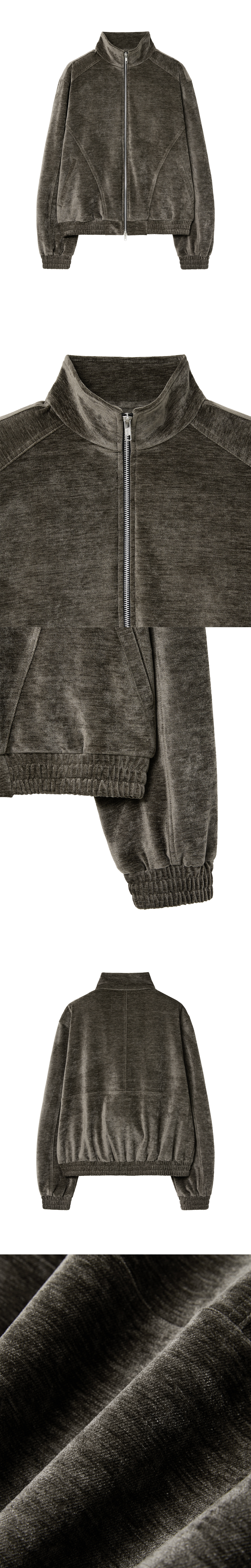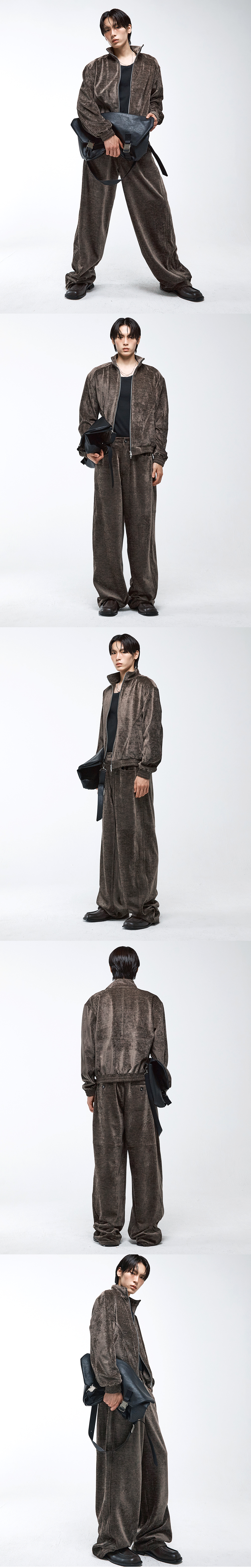 벨루어 텍스처와 다중 패널 절개가 어우러져 깊이 있는 구조감을 강조한 트랙 재킷입니다. 스탠드 칼라와 전면 지퍼 여밈, 밑단·소매의 밴딩으로 편안한 착용감과 정돈된 실루엣을 완성합니다. 안감 없이 제작되어 부담 없이 레이어링하기 좋고, 절개 라인이 만들어내는 입체감이 포인트가 됩니다. -DETAIL- 벨루어 텍스처 다중 패널 절개 디테일 스탠드 칼라 전면 지퍼 여밈 밑단·소매 밴딩 처리 사이드 포켓 안감 없는 구성