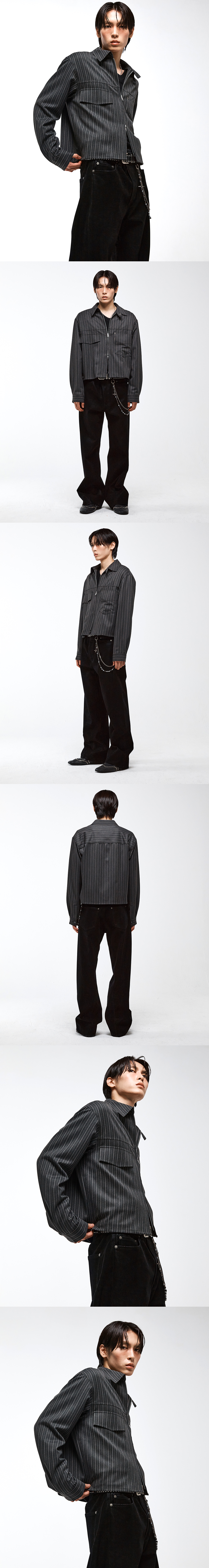 Haleine Cropped Pinstripe Zip Shirt Charcoal (WT321)