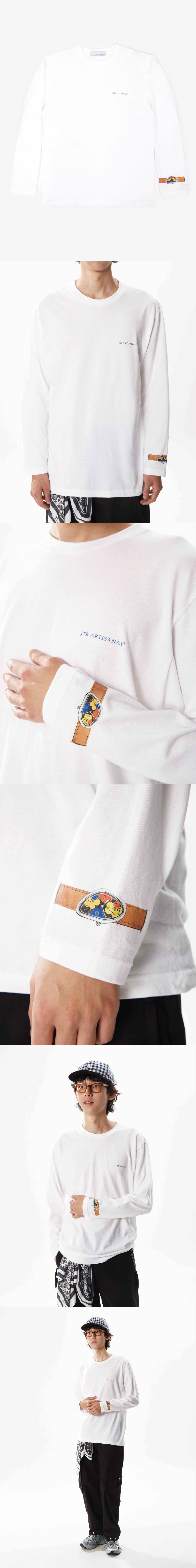 면 100% 원단으로 제작된 롱슬리브 티셔츠입니다. 소매에 시계를 형상화한 그래픽이 프린트되어 있으며, 여유로운 핏으로 움직임이 자유롭습니다.