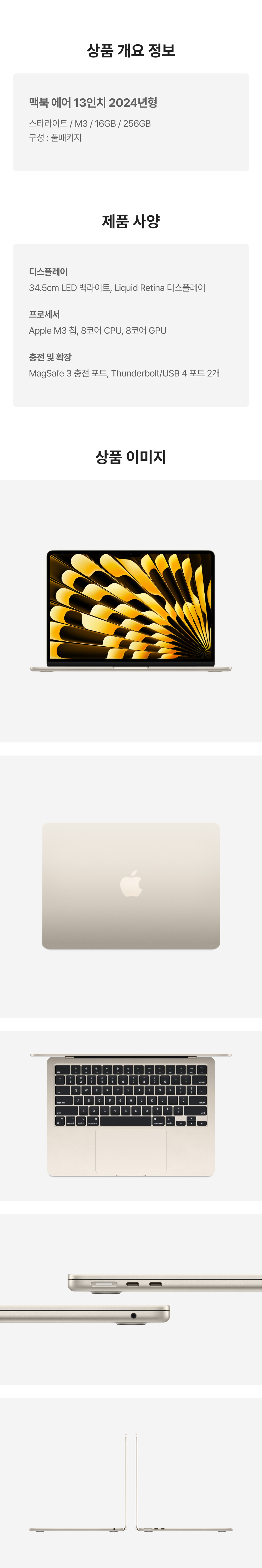 [S등급] 리퍼비시 2024 맥북 에어 13 M3 256기가 SSD 16기가 램 스타라이트