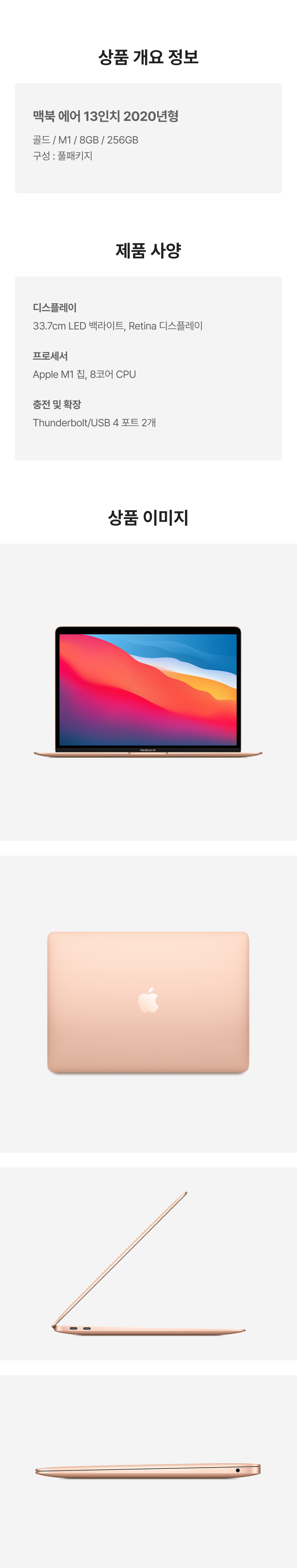 [S등급] 리퍼비시 2020 맥북 에어 13 M1 256기가 SSD 8기가 램 골드
