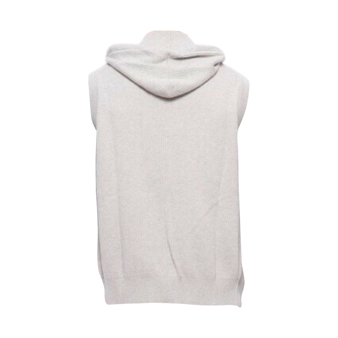 Brunello Cucinelli Logo Embroidered Hooded Zip-Up Kint Vest Light Grey