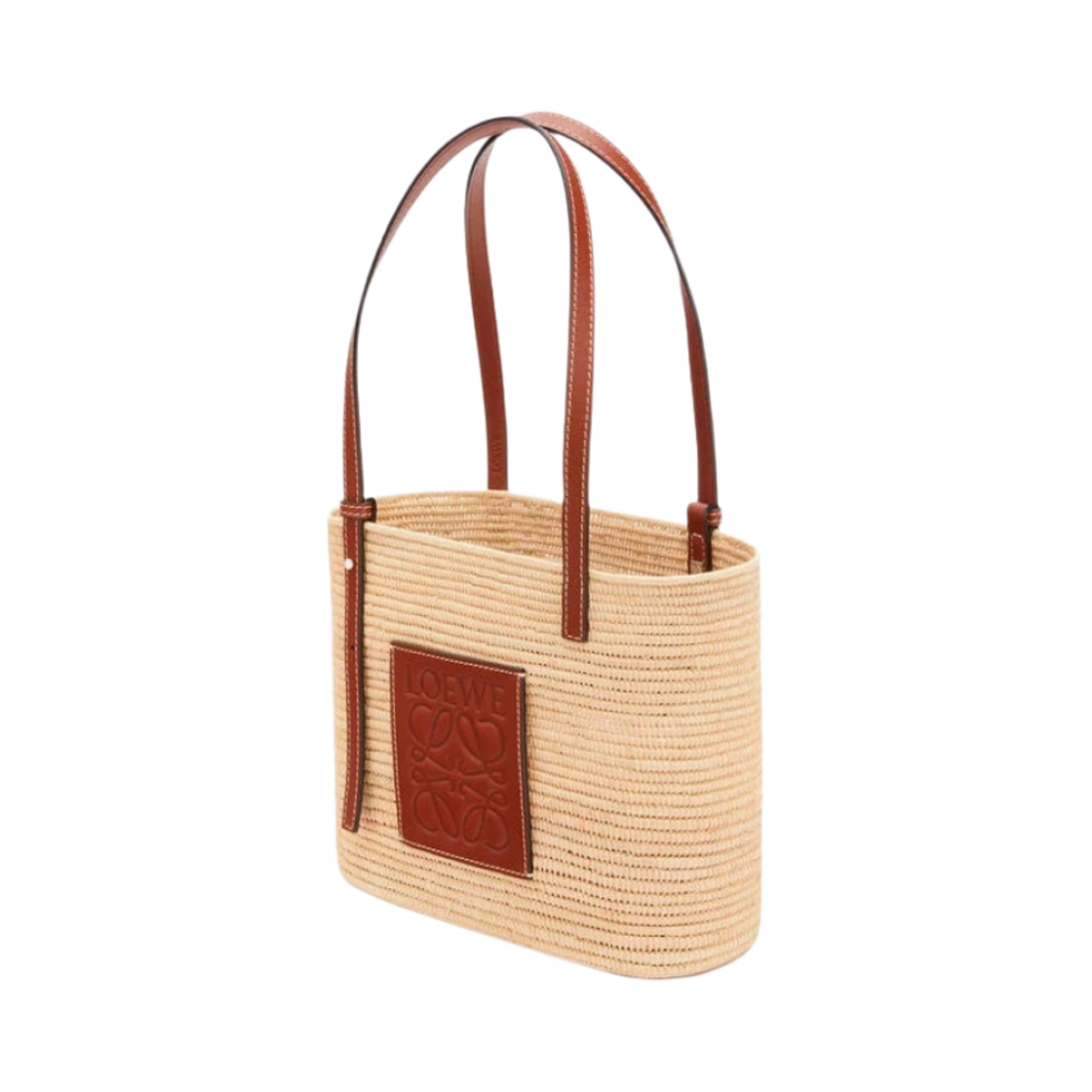 로에베 스몰 스퀘어 베스킷백 라피아 앤 카프스킨 내츄럴 피칸
