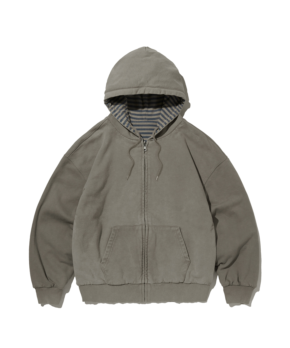 스웨이드 리버서블 스트라이프 후드 집업 차콜 그레이