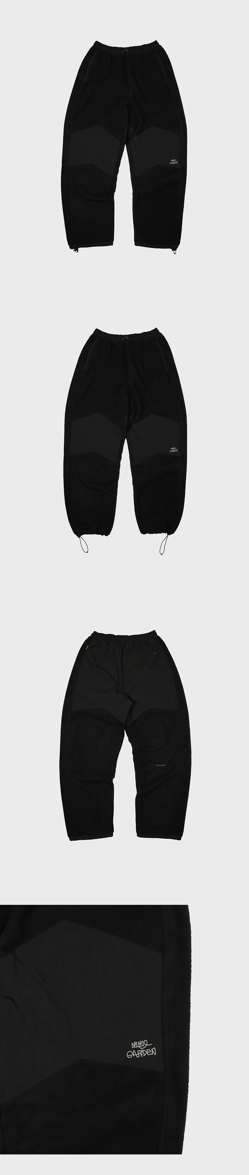 처음으로 출시하는 에메모 플리스 팬츠입니다. 세미 테이퍼드 핏으로 활동적인 느낌으로 제작하였습니다. 밑단 스트링으로 조일 수 있어 다양한 스타일을 즐길 수 있으며, 사이드 절개 라인을 통해 다리가 길어 보일 수 있게 디자인하였습니다. 전면 왼쪽 무릎 리플렉터 프린터와 오른쪽 후면 지그재그 자수로 포인트를 주었습니다. 플리스 원단이 상하기 쉬운 부분들을 에메모의 지그재그 로고를 떠올릴 수 있는 독특한 라인으로 패턴 디자인하여 나일론으로 보강하였습니다. 플리스 단독으로 또는 이너와 함께 입을 수 있는 봄, 가을, 겨울 아이템입니다. made in seoul model : w 162 / 43 (bottom 2size) m 176 / 65 (bottom 3size)