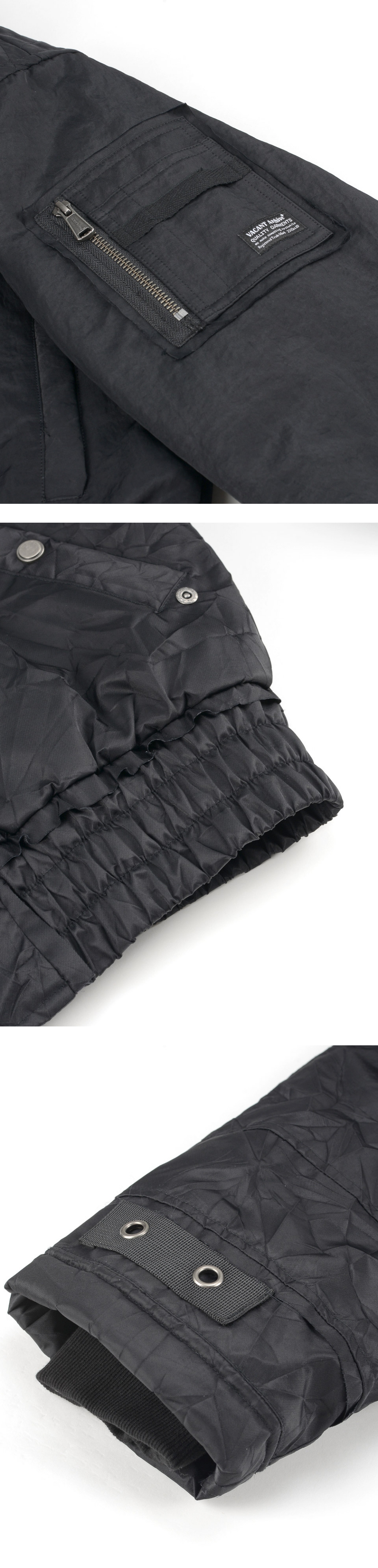 구겨져 보이는 나일론 소재 사용 다양한 룩킹이 가능한 후디 지퍼 디테일 소매 절개 디테일 밀리터리 웨빙 디테일 베이컨트 제작 리벳 사용 빈티지한 올풀림 연출 YKK 2WAY 지퍼 사용 S /M (CM) Length : 58 / 60 Shoulder : 48 / 49 Bust : 56 / 58 Sleeve : 61 / 62 SHELL : NYLON 100% LINING : POLYESTER 48% VISCOSE RAYON 52%