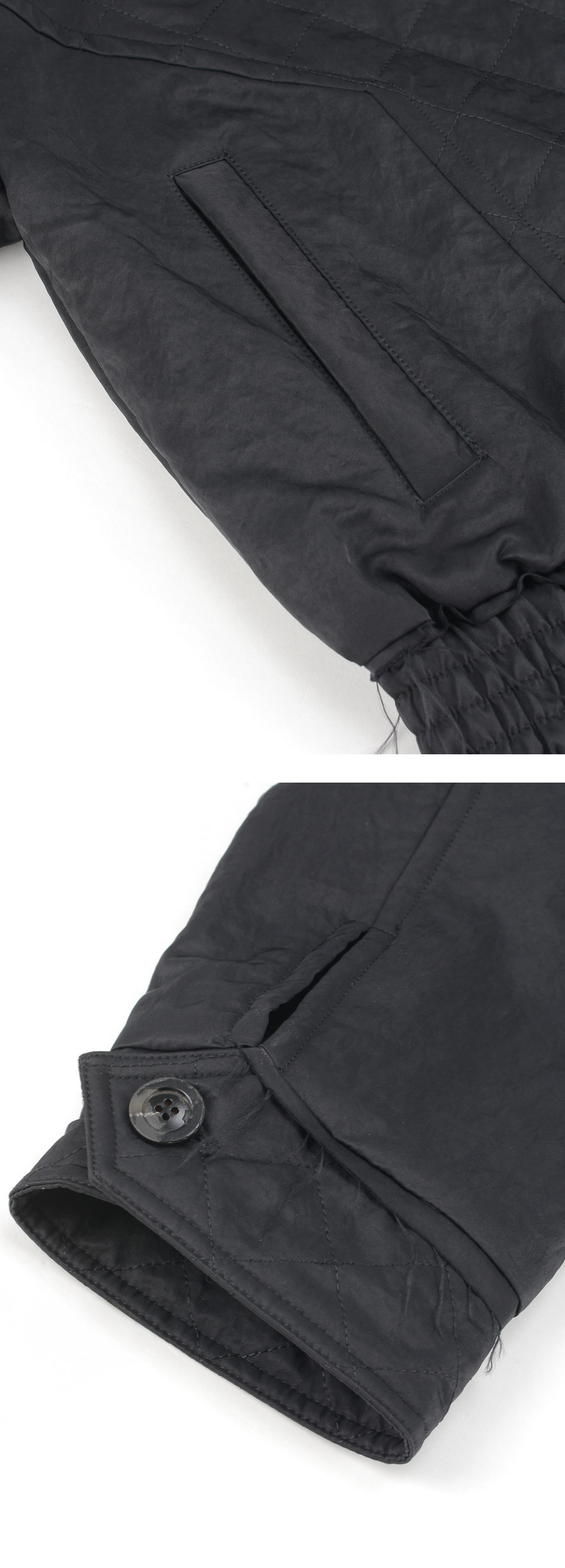 누빔처리 된 헤비트윌 원단 사용한 봄버 스타일의 자켓 리페인트한 빈티지 단추 사용 카라 디테일과 커프스 디테일로 빈티지한 무드 연출 YKK 2WAY 지퍼 사용 S/M (CM) Length : 49 / 51 Shoulder : 51 / 53 Bust : 47 / 49 Sleeve : 57 / 59 SHELL : NYLON 100% LINING : POLYESTER100%