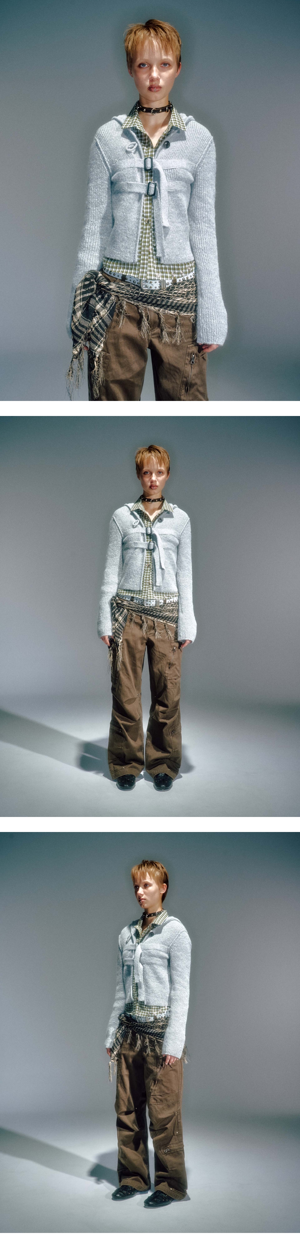 베이컨트 아카이브 칸나 버클 후디 가디건 멜란지