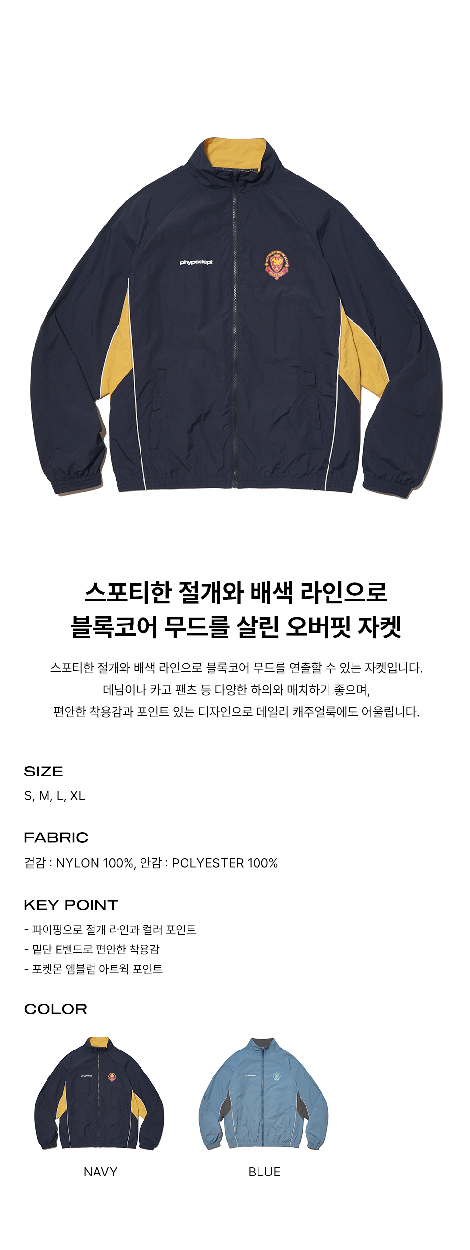 피지컬 디파트먼트 포켓몬 블록코어 오버핏 자켓 네이비
