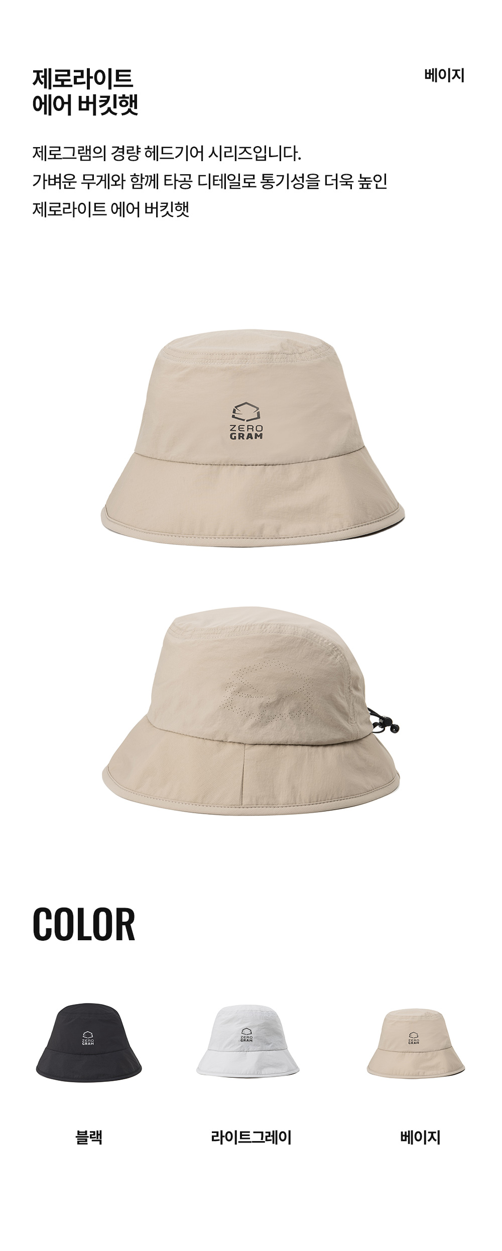 제로그램 제로라이트 에어 버킷햇 베이지