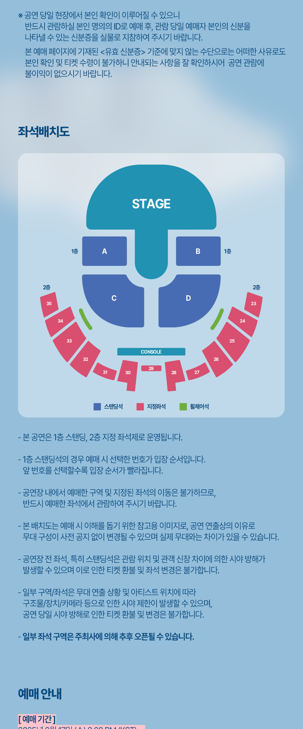 웹에서 예매하는 경우 반드시 예매 전, 팝업 차단 해제 후 진행 부탁드립니다. 지원이 중단된 IE(Internet Explorer) 브라우저 또는 다수의 브라우저로 동시 예매 진행 시 원활하지 않을 수 있습니다.