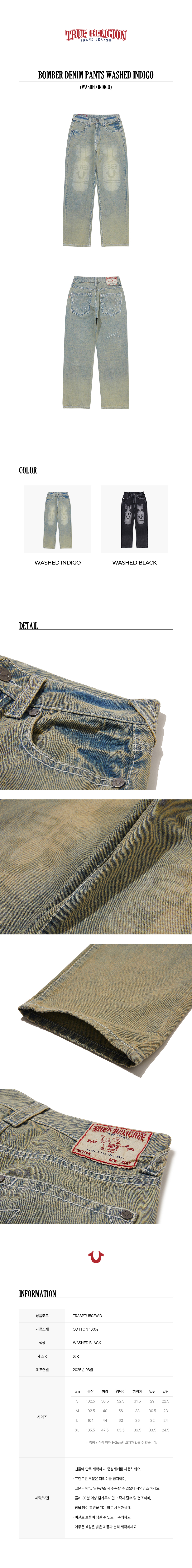 트루릴리젼 봄버 데님 팬츠 워시드 인디고