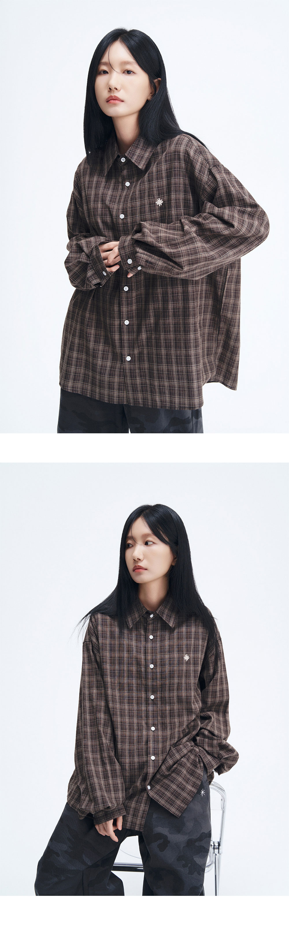 슬로우 레코드 하우스 케인 체크 셔츠 브라운
