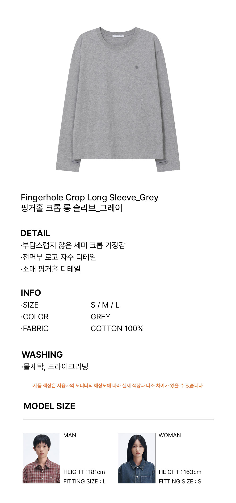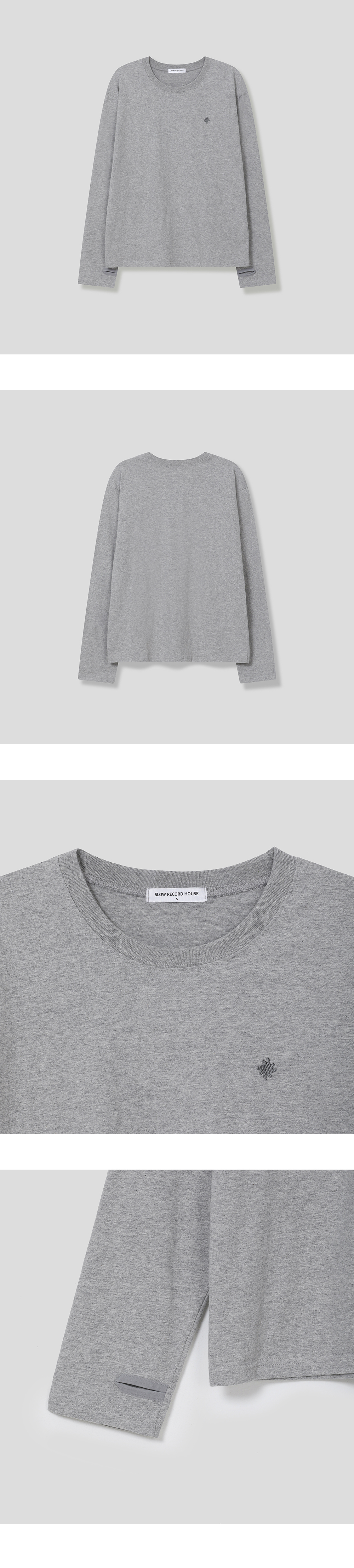 슬로우 레코드 하우스 핑거홀 크롭 롱 슬리브 그레이